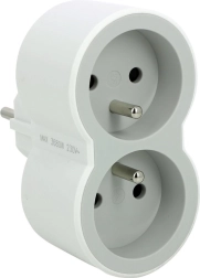 Ten adapter pozwala zamienić jedno gniazdo elektryczne na dwa, co jest praktyczne przy podłączaniu większej liczby urządzeń.