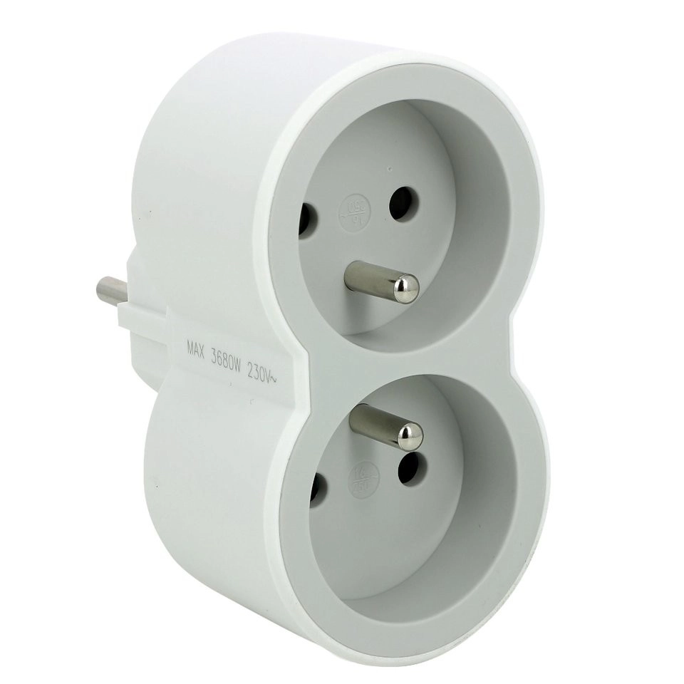 Wysokiej jakości elektryczny rozgałęźnik, który pozwala zamienić jedno gniazdo na dwa; idealny do domów i biur z ograniczoną liczbą gniazd elektrycznych.