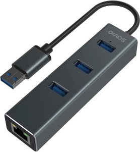 Savio hub USB-A 3.1 Gen 1 z 3 portami i adapterem RJ‑45 gigabit ethernet