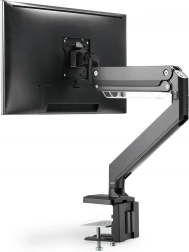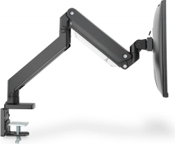 Ramię do monitora zostało zaprojektowane z myślą o ergonomicznym ustawieniu monitorów płaskich i zakrzywionych, co pomaga zmniejszyć napięcie karku i poprawia komfort pracy. Dzięki zintegrowanej sprężynie gazowej można łatwo dostosować wysokość monitora do własnych potrzeb.