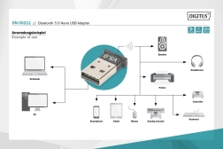 Za pomocą adaptera Bluetooth firmy DIGITUS możesz korzystać z wysokowydajnego standardu Bluetooth 5.0, który umożliwia szybki i jakościowy transfer danych, zdjęć lub muzyki. Urządzenie jest kompatybilne z mobilnymi urządzeniami, potrafi połączyć dwa komputery i podłączyć różne akcesoria takie jak kontrolery, słuchawki, głośniki, klawiatury, myszki, drukarki, tablety lub smartfony. Adapter wspiera tryb dualny, funkcję sieci LAN i porty szeregowe (SPP). Zasięg Bluetooth wynosi od 10 do 20 metrów w zależności od warunków. Dzięki funkcji BLE zużycie energii jest dostosowane do bieżących potrzeb.