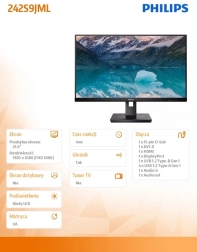 Elegancki monitor PHILIPS 23,8" z panelem VA zapewnia wysoki kontrast, szerokie kąty widzenia oraz wygodną pracę dzięki ergonomicznemu pivotowi. Oferuje uniwersalne złącza HDMI, DisplayPort i DVI, cienkie ramki i nowoczesny design do biura domowego i środowiska firmowego.