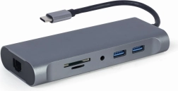 Adapter USB typu C 7 w 1 (rozdzielacz 3.0 + HDMI + VGA + PD + czytnik kart + dźwięk stereofoniczny), szary