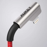 Wysokiej jakości czerwony nylonowy kabel AUKEY oferuje doskonałą funkcjonalność i trwałość dzięki kątowym złączom dla łatwego użytkowania.