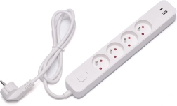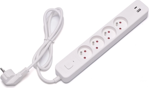 Wbudowana ochrona przeciwprzepięciowa zabezpiecza wszystkie podłączone urządzenia przed nieoczekiwanymi skokami napięcia, a obudowa z niepalnego polipropylenu zapewnia wysoką trwałość.
