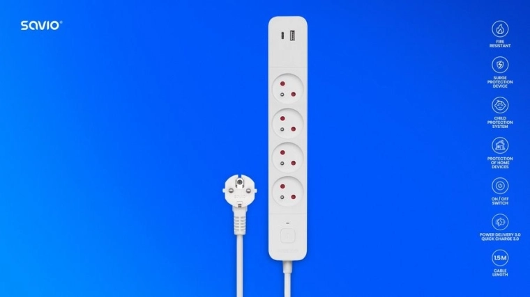Listwa zasilająca Savio została zaprojektowana tak, aby spełniać wszystkie Twoje potrzeby w zakresie zasilania i ładowania. Dzięki wbudowanemu podświetlanemu wyłącznikowi możesz łatwo sterować wszystkimi podłączonymi urządzeniami jednocześnie, co oszczędza energię i zwiększa bezpieczeństwo.