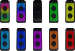 Głośnik FLAMEBOX UP oferuje niezwykłe podświetlenie FLAME RGB, które zmienia kolory i świeci w rytm muzyki. Dzięki temu wyróżnia się przy każdej okazji. Jest wyposażony w bezprzewodowe połączenie Bluetooth 5.0, wejścia USB, microSD i AUX, ponadto oferuje radio FM. Wyjątkowy dźwięk z mocą RMS 14W i PMPO 600W.