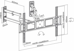 Ustaw telewizor pod idealnym kątem z możliwością pionowej regulacji od -15 do 5 stopni oraz poziomej regulacji od -45 do 45 stopni.