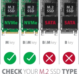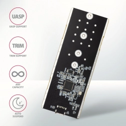 Obudowa jest wyposażona w żebrowanie oraz podkładki termoprzewodzące, które skutecznie chłodzą włożony dysk M.2 SSD, zwiększając tym samym jego żywotność. Obudowa boczna chroni SSD, z ochroną przed przegrzaniem, która zmniejsza ryzyko „thermal throttlingu”.