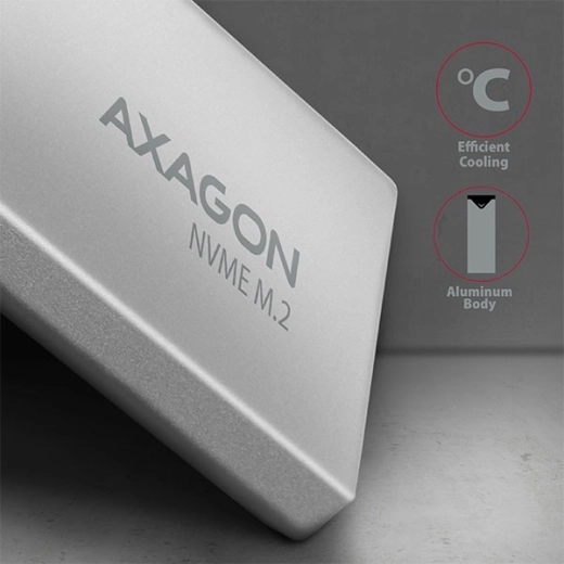 Zewnętrzna obudowa AXAGON idealnie sprawdzi się do stworzenia szybkiej i kompaktowej pamięci zewnętrznej. Obsługuje NVMe M.2 SSD o wymiarach do 22x80 mm, bez ograniczeń pojemności. Aluminiowa obudowa i podkładki termoprzewodzące zapewniają efektywne chłodzenie zainstalowanego dysku SSD.