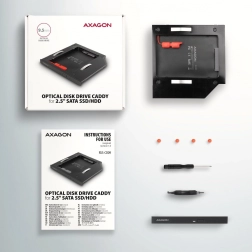 Nowoczesna wewnętrzna ramka AXAGON, idealna do przekształcenia napędu CD/DVD w szybszy dysk SSD/HDD, umożliwia łatwy upgrade Twojego notebooka.