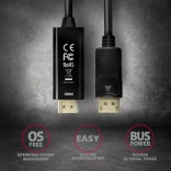 Ten aktywny adapter DisplayPort na HDMI umożliwia łatwe połączenie komputera z monitorem, telewizorem lub projektorem za pomocą jednego kabla. Rozdzielczość do 4K/30Hz gwarantuje wysoką jakość transmisji obrazu i dźwięku.