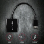 Praktyczny konwerter HDMI → VGA od AXAGON rozwiąże podłączenie starszych wyświetlaczy do urządzeń z wyjściem HDMI – od komputerów i laptopów, przez set-top boksy, aż po konsole do gier jak Xbox czy PlayStation. Jest to aktywny, jednokierunkowy adapter (HDMI → VGA), który bez instalacji konwertuje sygnał cyfrowy na analogowy i dostarcza ostry i stabilny obraz do 1920×1200/60 Hz.