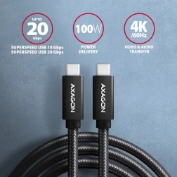 Ten przewód połączeniowy AXAGON USB‑C ↔ USB‑C został zaprojektowany do szybkiego i stabilnego łączenia. Obsługuje transfer danych do 20 Gb/s (USB 3.2 Gen 2x2) i jest wstecznie kompatybilny z USB 3.2 Gen 2 / Gen 1 oraz USB 2.0. Umożliwia jednoczesny transfer danych i ładowanie (Data Sync & Fast Charging), a także przesył obrazu do 4K@60 Hz oraz dźwięku – wymagany port USB‑C z trybem DisplayPort Alt Mode lub Thunderbolt 3/4.