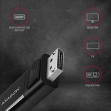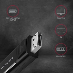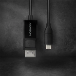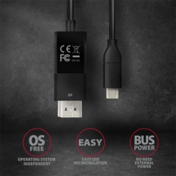 Praktyczny aktywny kabel łączy konwerter i przewód połączeniowy w jedno kompaktowe rozwiązanie. Umożliwia wyświetlanie treści z urządzenia USB‑C na ekranie z DisplayPort w najwyższej jakości Ultra HD 4K przy 60 Hz, włącznie z wielokanałowym dźwiękiem. Złącze DP ma zatrzask z przyciskiem zwalniającym dla pewnego i bezpiecznego połączenia, zasilanie odbywa się bezpośrednio z USB‑C – bez zewnętrznego zasilacza.