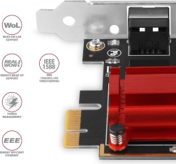 AXAGON PCEE‑G25 dodaje do PC wyjątkowo szybkie połączenie 2.5GBase‑T przez standardowy port RJ‑45. Dzięki standardowi IEEE 802.3bz osiągniesz prędkości do 2.5 Gb/s nawet na typowych kablach Cat 5e / Cat 6 do 100 m. Karta idealnie nadaje się do modernizacji sieci domowych i firmowych, dodania dodatkowego portu LAN lub zastąpienia niesprawnej karty zintegrowanej.
