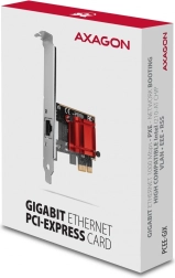 - Karta PCIe Gigabit Ethernet ze standardowym śledziem, śledź low‑profile, instrukcja instalacji, pakowana w pudełku