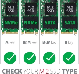- Moduły B+M‑key można włożyć do obu gniazd; zawsze sprawdź, czy dysk jest SATA czy NVMe i umieść go w odpowiednim gnieździe