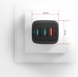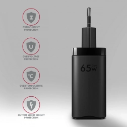 Uniwersalna ładowarka o łącznej mocy 65W sprawnie doładowuje telefony, tablety i laptopy. Dwa dwustronne porty USB‑C oraz jeden USB‑A zapewniają elastyczne kombinacje ładowania, w tym inteligentny podział mocy. Dzięki chipsetowi GaN obudowa ładowarki jest wyraźnie mniejsza, lżejsza i bardziej wydajna – idealna w podróży.