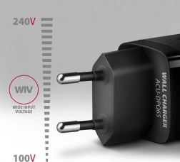 Kompaktowa ładowarka podróżna AXAGON GaN 65W szybko naładuje jednocześnie do trzech urządzeń. Dzięki technologii GaN oferuje wysoką moc w małej obudowie, dwa porty USB‑C z Power Delivery 3.0/QC 4+ oraz jeden USB‑A z QC 3.0. Wspiera PPS, Samsung SFC/SFC 2.0 oraz Apple PD 20–27W i potrafi zasilać także laptopy do 65W.