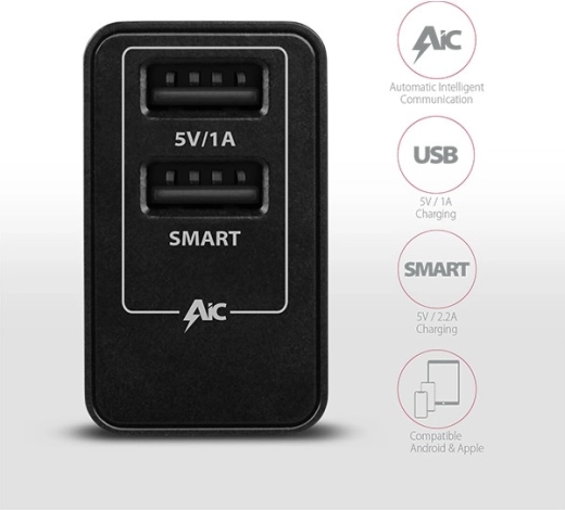 Kompaktowa sieciowa ładowarka AXAGON o łącznej mocy 16 W z dwoma portami USB-A ładuje jednocześnie dwa urządzenia. Inteligentne wyjście SMART do 5 V/2,2 A automatycznie rozpoznaje podłączone urządzenie i dobiera optymalną prędkość. Wspiera telefony i tablety z Android i Apple, ma stabilne sterowanie ładowaniem CV/CC oraz zaawansowaną ochronę OCP/OVP/OTP/OSP.