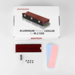 Pasywny radiator AXAGON do SSD M.2 2280 skutecznie obniża temperaturę nawet o 25 °C dzięki aluminiowym żebrom. Uniwersalne rozwiązanie dla dysków jednostronnych i dwustronnych, kompatybilne z SATA i NVMe. W zestawie znajdują się trzy silikonowe podkładki termiczne dla idealnego przylegania i łatwego montażu.