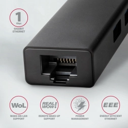 - 4 w 1: 3x USB-A + RJ‑45 Gigabit LAN