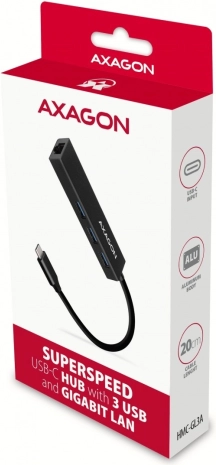 Elegancki i wytrzymały wieloportowy hub AXAGON HMC-GL3A to świetny dodatek do ultrabooków i nowoczesnych laptopów z USB-C. Zyskujesz trzy szybkie porty USB-A dla peryferiów i dysków zewnętrznych oraz stabilną Gigabit LAN do pracy i rozrywki. Dzięki standardowi USB 3.2 Gen 1 (USB 3.0) obsługuje transfery do 5 Gb/s i bez problemu obsłuży kilka dysków zewnętrznych jednocześnie.