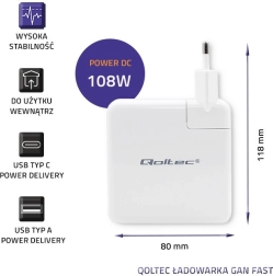 Ładowarka Qoltec GaN FAST 108W to rewolucja w technologii ładowania dzięki innowacyjnemu zastosowaniu półprzewodnikowego materiału GaN. Ta technologia sprawia, że ładowarka jest nie tylko wydajna i szybka, ale także lżejsza niż tradycyjne modele.