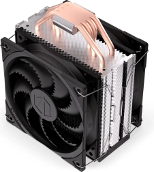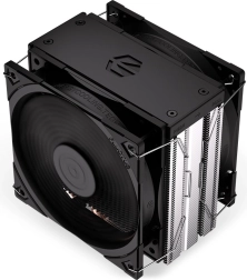 Asymetryczny radiator z 4 miedzianymi heatpipe’ami i kompaktową podstawą zapewnia skuteczne odprowadzanie ciepła oraz kompatybilność z modułami RAM. Wysokość zaledwie 155 mm ułatwia montaż w mniejszych obudowach. W zestawie znajduje się wysokiej jakości pasta Pactum PT‑3 oraz prosty system montażowy, z którym poradzisz sobie nawet przy pierwszym składaniu PC.