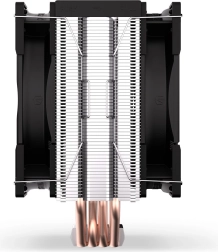 Gęsto użebrowany radiator z kompaktową podstawą oraz czterema miedzianymi rurkami cieplnymi skutecznie zbiera i odprowadza ciepło z procesora nawet podczas długotrwałego obciążenia.