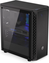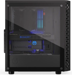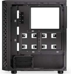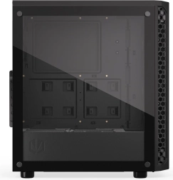 Wytrzymały szklany panel boczny eksponuje Twoje komponenty i oświetlenie RGB w świetnym stylu, bez kompromisów w sztywności obudowy.