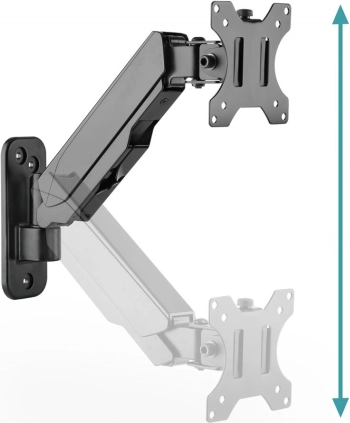 Maksymalizuj przestrzeń i popraw ergonomię dzięki niezawodnemu ramieniu ściennemu do monitorów płaskich i zakrzywionych. Zintegrowana sprężyna gazowa zapewnia płynną i lekką regulację wysokości aż o 28 cm, dzięki czemu łatwo dopasujesz monitor do swojego wzrostu i pozycji siedzącej.