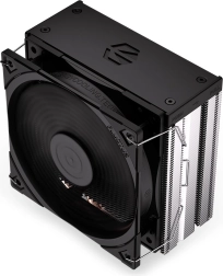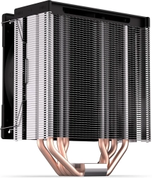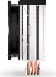 Wysokość ok. 15,5 cm umożliwia montaż w mniejszych obudowach. Asymetryczny radiator z gęstym żebrowaniem i 4 heatpipe’ami utrzymuje niskie temperatury nawet pod obciążeniem.