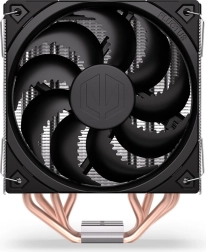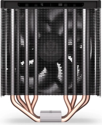 Endorfy Fera 5 został zaprojektowany do efektywnego chłodzenia w kompaktowych zestawach. Asymetryczny radiator z gęstym żebrowaniem oraz cztery miedziane heatpipe’y szybko odprowadzają ciepło z procesora, a optymalizacja pod jednokierunkowy przepływ powietrza zwiększa skuteczność w warunkach rzeczywistych.