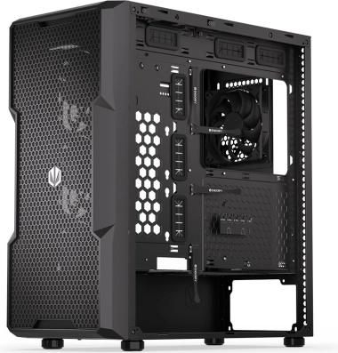 ENDORFY Regnum 400 Air to przestronna i wysoce przewiewna obudowa komputerowa o wymiarach 472 × 442 × 220 mm. Oferuje siatkowany przedni panel dla znakomitego przepływu powietrza, hartowane szkło do efektownej prezentacji zestawu oraz wsparcie dla nawet 8 wentylatorów. W zestawie otrzymujesz 4 ciche wentylatory Stratus 120 PWM. Obsługuje chłodnice 240/280 mm u góry oraz do 360 mm z przodu, więc utrzyma podzespoły w chłodzie nawet podczas wymagającej pracy i grania.