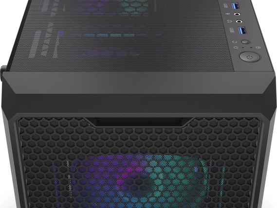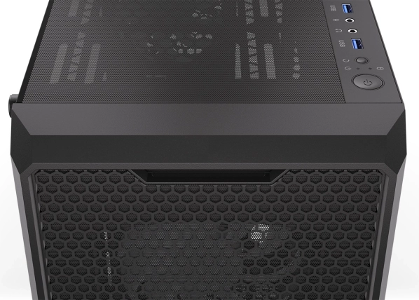 - Mesh dla lepszego przepływu powietrza, górne I/O (USB i audio – zależnie od konfiguracji)
