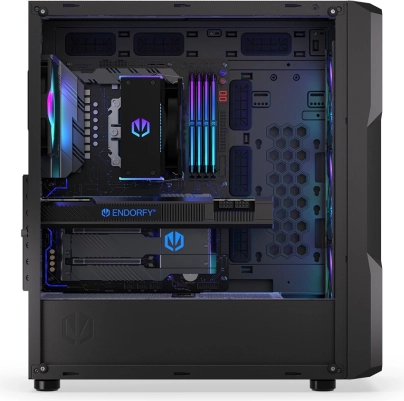 Zbuduj zestaw bez kompromisów. Endorfy Regnum 400 ARGB mieści płyty główne do E-ATX, zasilacz do 275 mm i kartę graficzną do 360 mm. Dzięki przemyślanej przestrzeni wewnętrznej i opcjom prowadzenia okablowania montaż jest czysty i łatwy, a boczny panel z hartowanego szkła stylowo eksponuje komponenty i efekty ARGB.