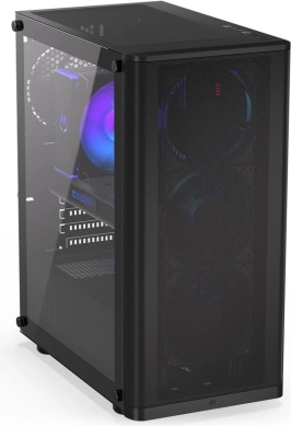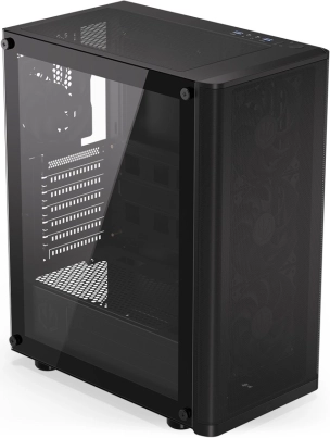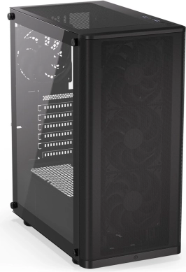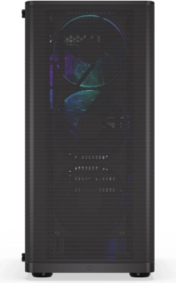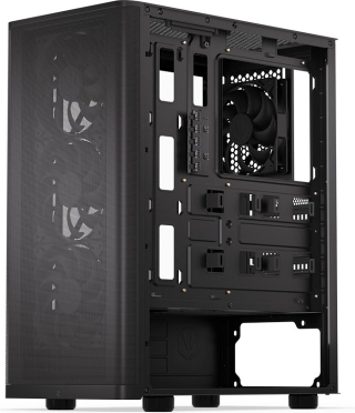 Boczny panel z hartowanego szkła elegancko prezentuje komponenty, a solidna konstrukcja obudowy oferuje miejsce dla wydajnych zestawów. Bez problemu zainstalujesz płytę główną ATX, do 3× 2,5" nośników (lub 1× 3,5" + 2× 2,5") oraz rozbudowane chłodzenia powietrzne lub układy wodne z radiatorami 360 mm (przód) i 240 mm (górny panel).