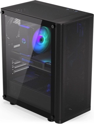 Kompaktowa i przestronna obudowa komputerowa ENDORFY Ventum 200 Air z bocznym panelem z hartowanego szkła oferuje świetny przepływ powietrza, skuteczną filtrację kurzu oraz wsparcie dla chłodzenia nawet 7 wentylatorami. Mieści pełnowymiarową płytę główną ATX, chłodnicę 360 mm z przodu oraz 240 mm u góry, a w zestawie znajdują się cztery ciche wentylatory Stratus 120 PWM.