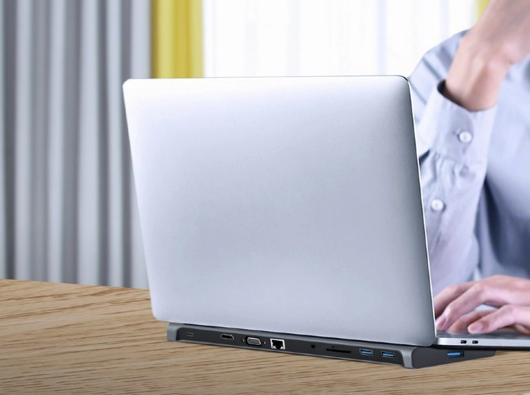 - 10‑w‑1: HDMI, VGA, USB, LAN, czytnik kart, audio, Power Delivery