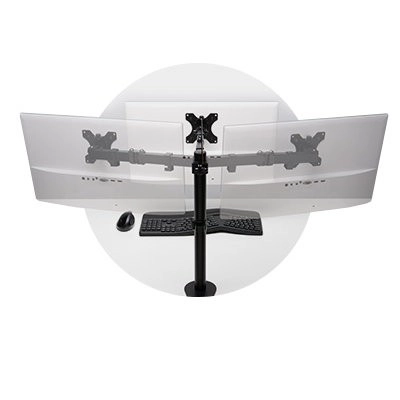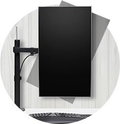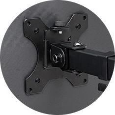 Ramię oferuje obrót o 90°, pochylenie o 45° oraz całkowity zakres ruchu do 399 mm, aby optymalnie ustawić ekran.