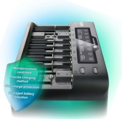 Szeroka gama obsługiwanych rozmiarów obejmuje standardowe paluszki AA i AAA, większe C i SC, a także bloki 9V. W przypadku akumulatorów litowych obsługuje napięcia 3,6/3,7 V (Li-ion) oraz 3,85 V (Li-HV), a także LiFePO4.