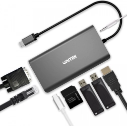 Ten Unitek USB-C hub 8w1 jest zaprojektowany dla przenośnych urządzeń, które potrzebują zwiększenia liczby dostępnych portów. Oferuje