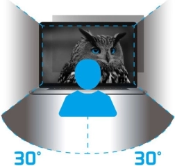 Filtr prywatności Natec Owl oferuje nowoczesną ochronę ekranu dzięki technologii mikrorolety, która sprawia, że zawartość ekranu jest niewidoczna pod kątem. Przy kącie widzenia 30 stopni ekran wydaje się całkowicie czarny.