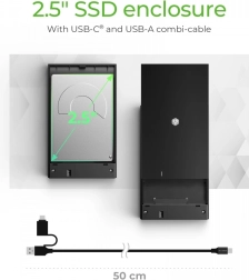 Skorzystaj z wygody i elastyczności dzięki zewnętrznej obudowie dla Twoich dysków SSD/HDD. Z portami USB Type-C i Type-A umożliwia łatwe podłączenie do wszystkich nowoczesnych urządzeń. Obudowa jest kompatybilna z systemami Windows, macOS i Chrome OS, więc możesz liczyć na jej bezproblemowe działanie.