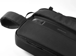 Wyposażony w ukryte zamki i kieszenie chroniące przed kradzieżą oraz w wytrzymałą konstrukcję odporną na przecięcie i wodoodporną. Zintegrowana cynkowa kłódka umożliwia przymocowanie do dowolnego stałego elementu, a stalowa linka w pasku zwiększa bezpieczeństwo.