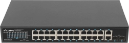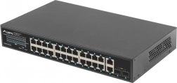 Bez kompromisów: Switch oferuje łącznie 28 portów, w tym 24 porty PoE+ (Gigabit Ethernet), 2 porty uplink (Gigabit Ethernet) oraz 2 porty uplink (SFP Gigabit). Taki przemyślany projekt zapewnia podłączenie nawet 24 urządzeń.