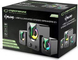 Odkryj świetny dźwięk z głośnikami USB RGB Soprano 2.1, które oferują czysty i naturalny odwzorowany dźwięk. Dzięki podświetleniu RGB LED dodają Twojej przestrzeni pracy stylowy wygląd. Kompatybilne ze wszystkimi komputerami wyposażonymi w wyjście na głośniki i port USB.
