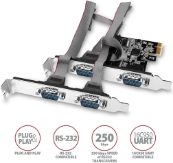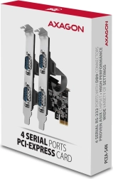Karta PCI-Express AXAGON PCEA-S4N dodaje do Twojego PC cztery porty szeregowe RS-232 z złączami DB9. Dzięki sprawdzonemu chipsetowi ASIX AX99100 zapewnia stabilną komunikację, wysoką przepustowość i pełną kompatybilność z urządzeniami przemysłowymi, systemami kasowymi oraz maszynami CNC. Instalacja jest prosta dzięki obsłudze Plug and Play oraz dołączonym zaślepkom do obudów standardowych i niskoprofilowych.